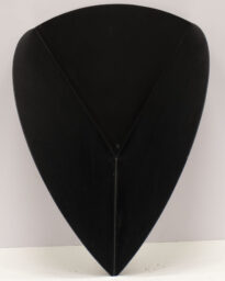 Escultura na cor preta no formato semelhante a um polígono