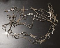 Objeto composto por vinte e duas tesouras fixadas uma a outra