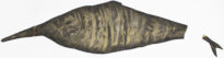Obra recortada em formato de boto, cores predominantes em preto, cinza e verde. Há grafismos fixados na cor preta