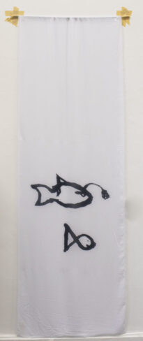 há duas figuras remetem a peixes, o da parte superior um peixe lanterna e o da parte inferior um peixe genérico