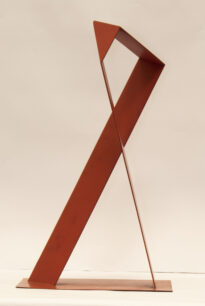 Escultura retorcida na cor vermelha, forma semelhante a um símbolo do infinito