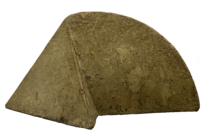 Escultura no formato 1/4 de círculo e prisma, textura semelhante a da lua, cor acizentada